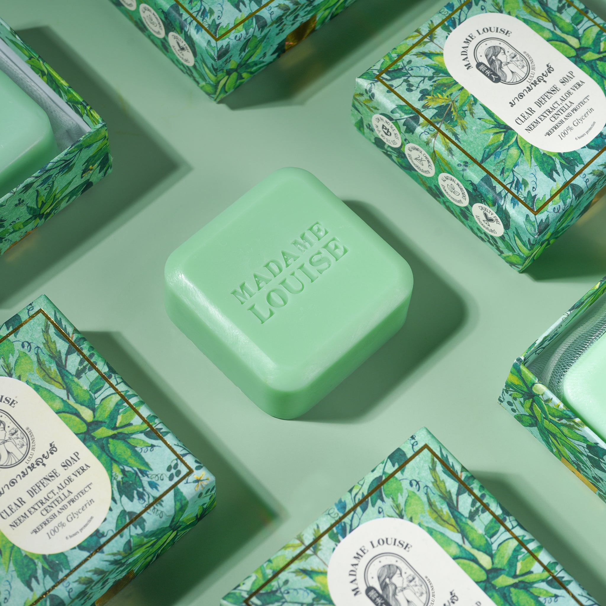 With the Encapsulation technology, clear defense soap offers 6 hours of deodorizing properties on the skin. Packed with natural ingredients focused on relieving acne and rash related skin problems that come with excessive sweating, Clear Defense protects and nourishes the skin whilst healing it with ingredients such as Neem, Nees and Centella Asiatica which are Asian remedies for acne and inflamed skin.
