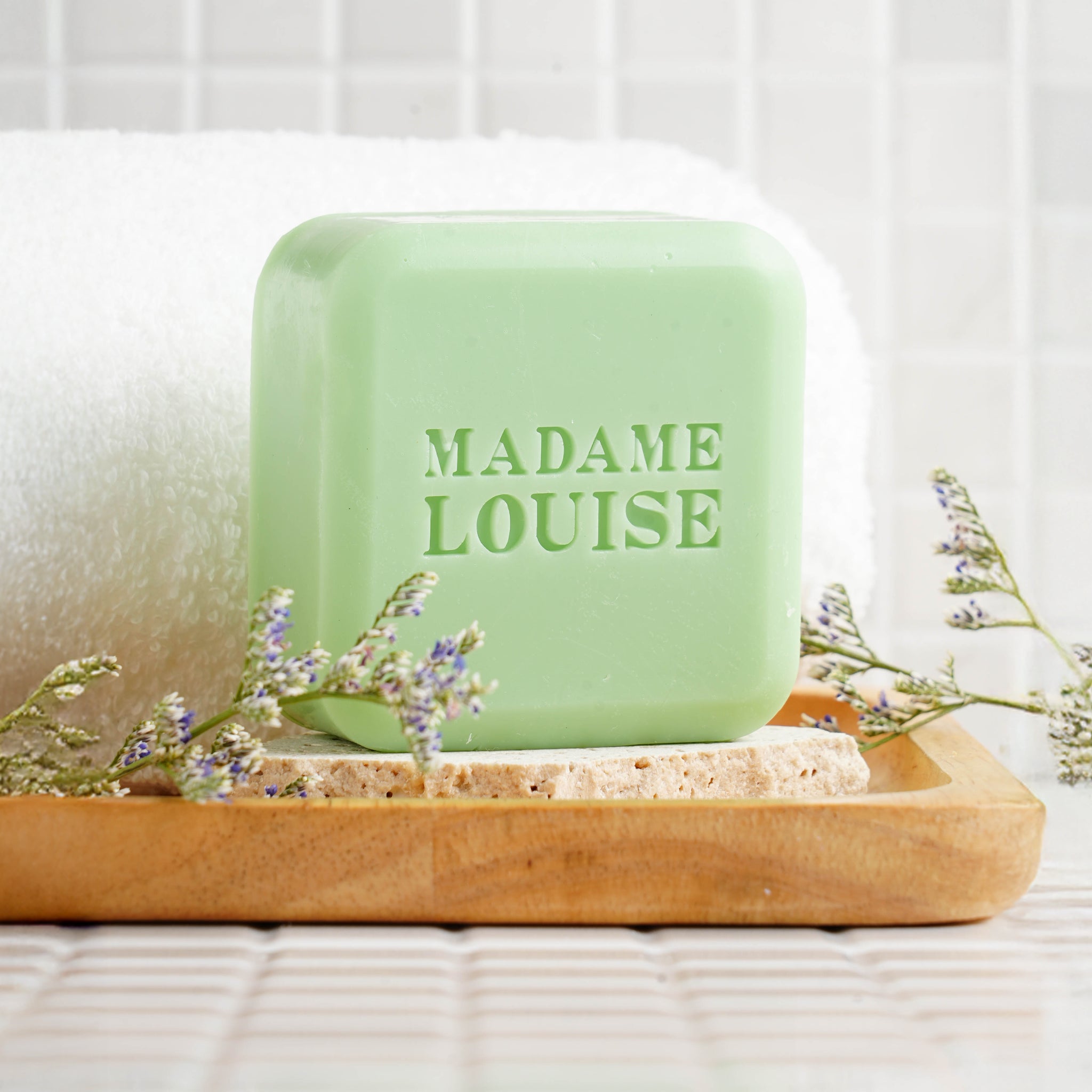 A soap net is provided with every purchase, lather with water and a delicate froth will form to wash the face and body. The soap should be stored by hanging the net.